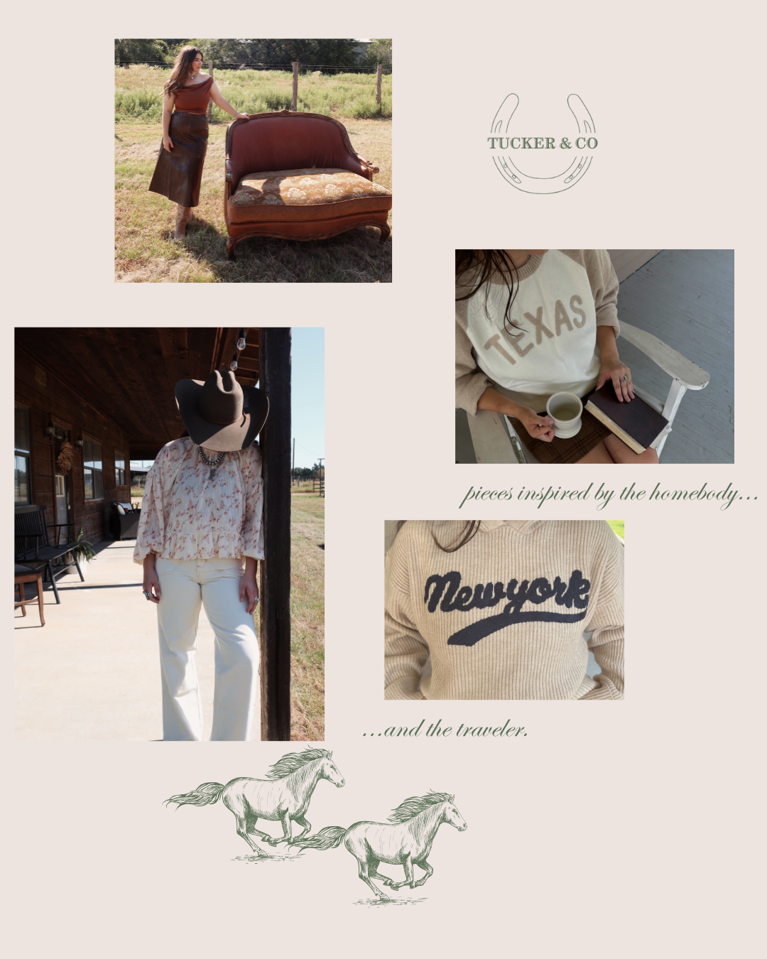 At Tucker & Co, we believe true style never fades—it endures. Inspired by our trademark, “Enduring style, from saddle to stately,” we blend the spirit of the open range with the sophistication of city life. Our curated collections celebrate the timeless beauty of western and equestrian fashion, offering pieces that transition seamlessly from countryside trails to elegant urban soirées. Whether you’re a cowgirl at heart or a city sophisticate with a love for classic western flair, we bring you finely crafted apparel, accessories, and statement pieces that embody confidence, grace, and authenticity.