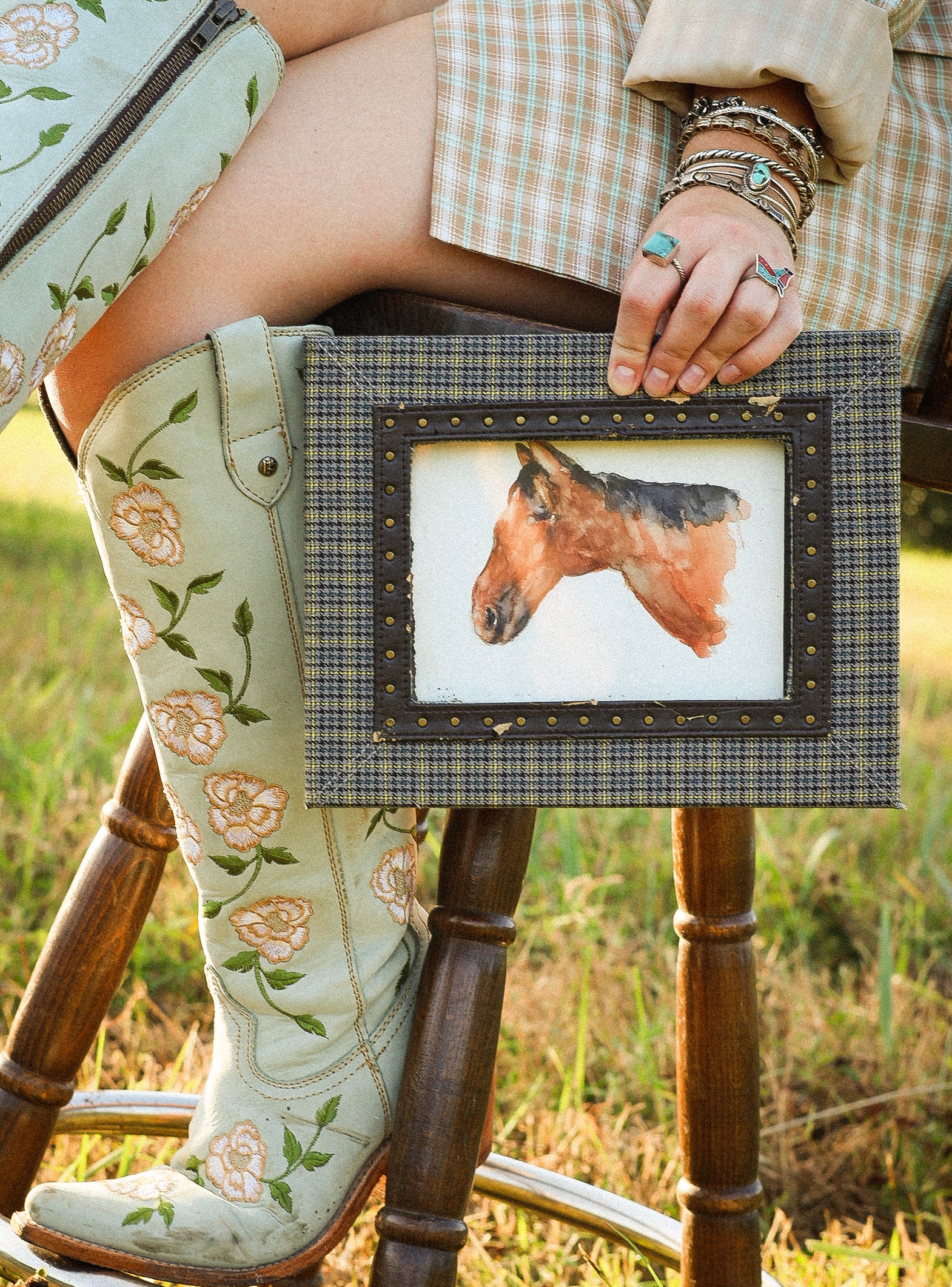 Tucker & Co's logo is a painting of Tucker, one of my childhood horses, and it was done by my Grandma. She is my hero and inspiration and I don't know what I would do without her! (If you're in the New Braunfels area, you can shop her artwork at the Gallerie in Gruene, TX or at the New Braunfels Art League downtown). My other Grandma is also very creative and is an amazing seamstress. She used to make headbands and accessories all the time. Some local boutiques used to carry her stuff and she would take me with her when she would go to bring them new products. Little Sophie always knew I would have a boutique of my own one day. Both my Grandmothers have strongly influenced my creativity. Then, of course, there's Tucker. Tucker was one of those once in a lifetime horses, if you know, you know. He was something special and he sparked my love for horses and riding. I grew up riding both English and Western, so you'll see pieces inspired by both of those worlds in the shop!