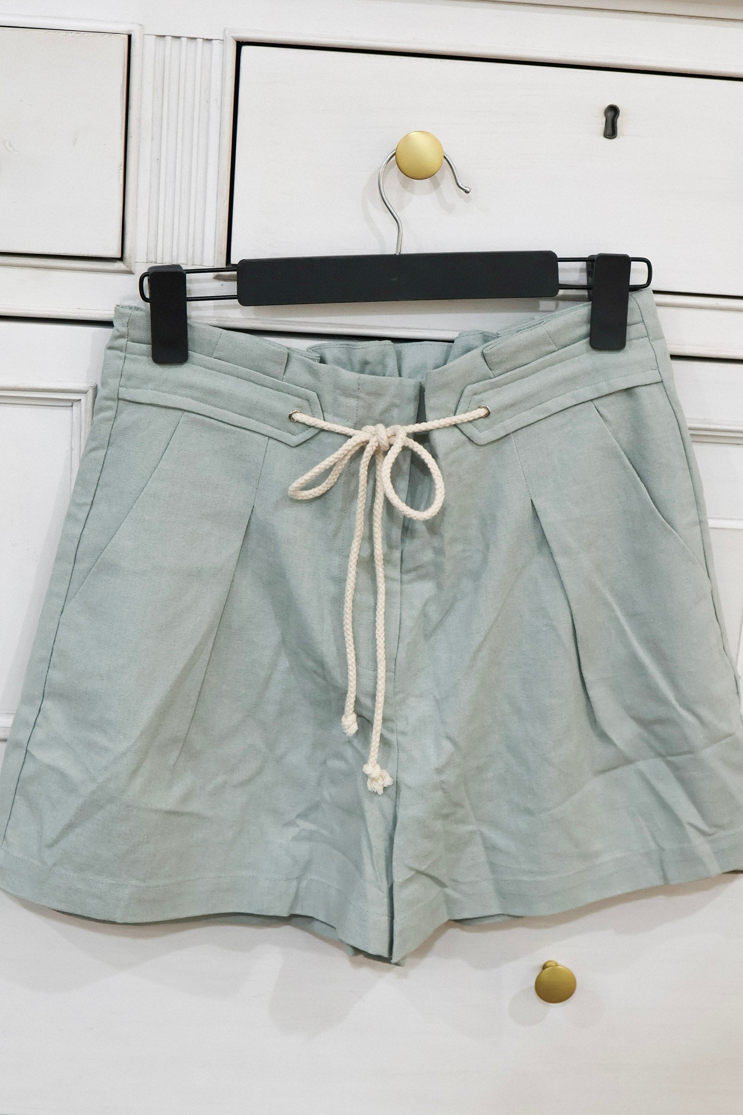 These shorts are such a comfy linen-y feel! They have elastic in the back and tie in the front, so they rally cinch your waist. The prettiest sage green color!