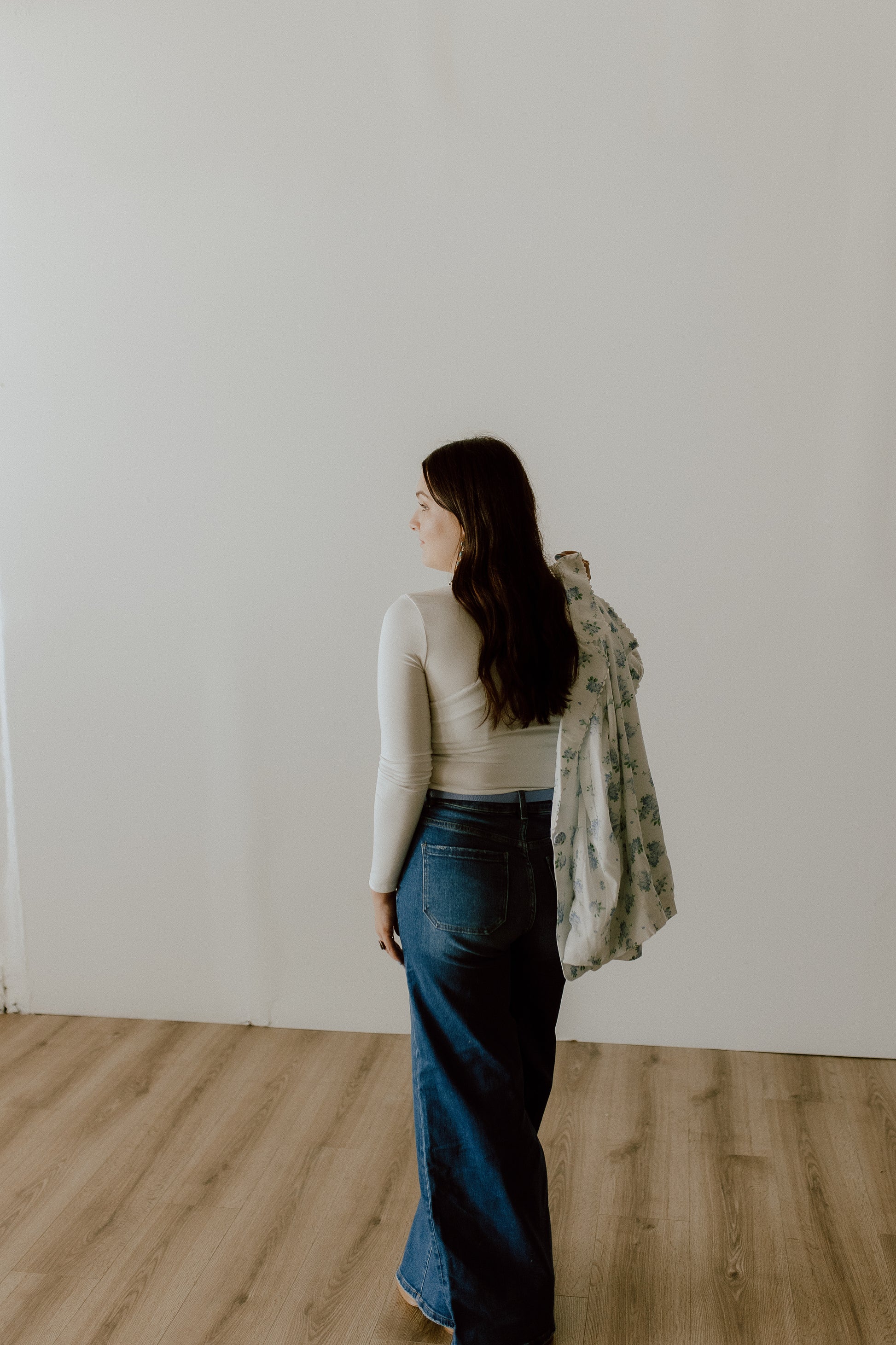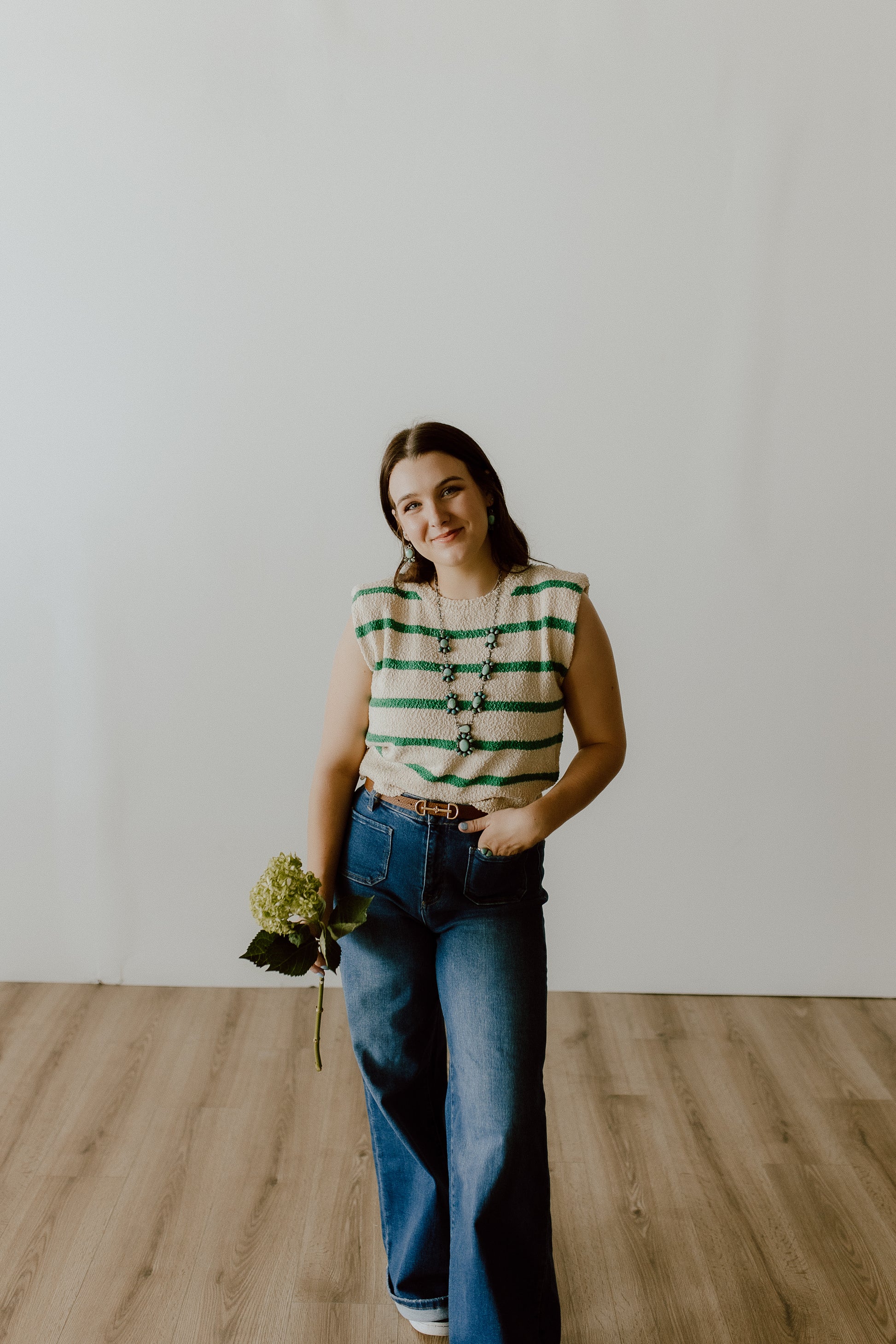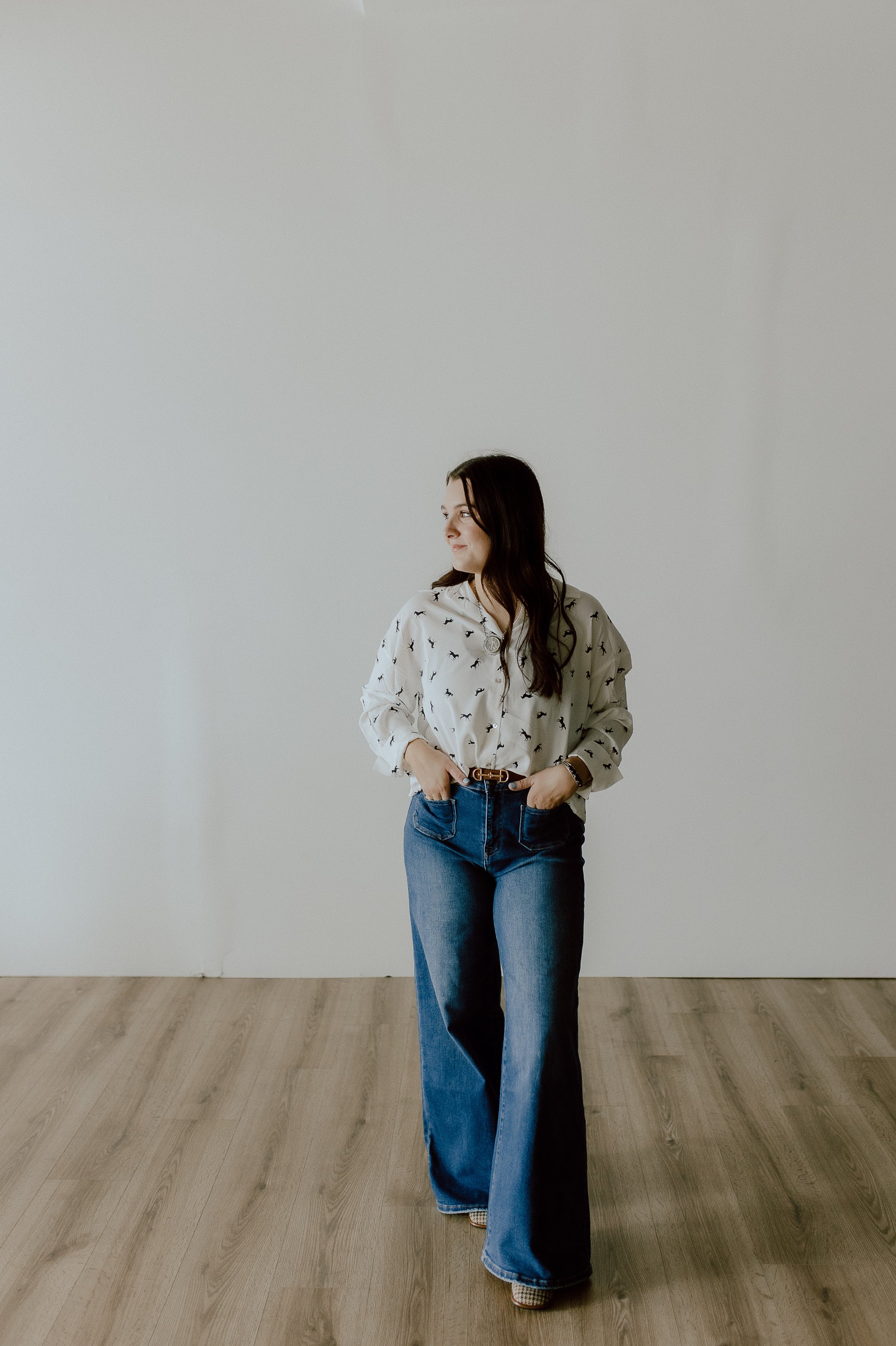 These jeans have the cutestttt front pockets! They are stretchy and very forgiving, so I wouldn't size up. High-waisted! For my shorter girls, they are a little long, but would be perfect with boots or platforms. They can be rolled easy!