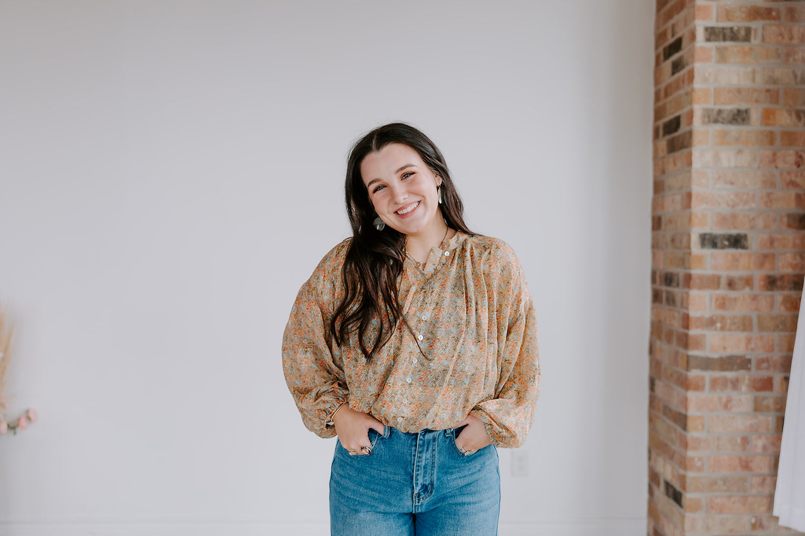 Cutest Floral blouse! Buttons and gathers at the waist and has velvet mixed in!